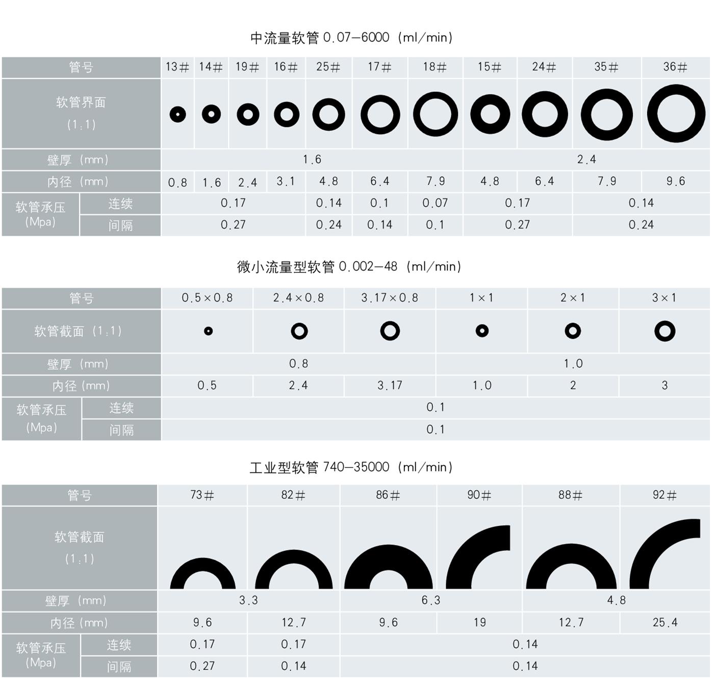 如需要傳輸具有腐蝕性等特殊性質的流體,可選擇進口軟管 Tygon、pharMed、Viton、Fluran等或者致電保定齊力恒流泵有限公司,由齊力公司銷售員為您選擇一款合適的軟管。